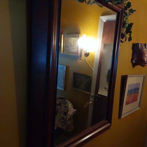 Glasset sidder lidt løst i rammen, det kan fixes med små søm, eller ved at man hænger det op på væggen.