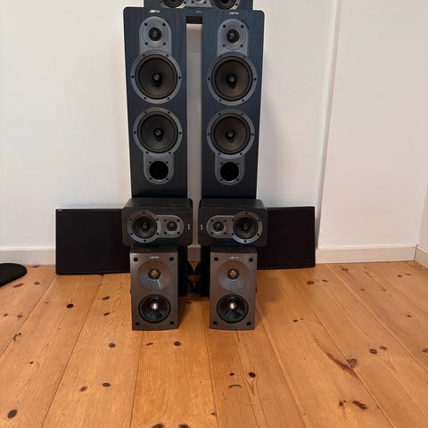 1 sæt super flotte Jamo A-610 ( graphic ) højtaler til væg montering. Front lavet i glas. Der er 3 sæt fronter med. Spiller fint og står i super fin stand. 44x39x8cm.