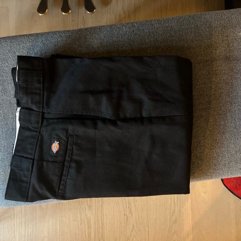 Dickies Slim Straight bukser til mænd i str W29 L30. Modellen har lige, smalle ben og klassisk bukselukning. Brugt to gange. Kunne bruges til en konfirmation...