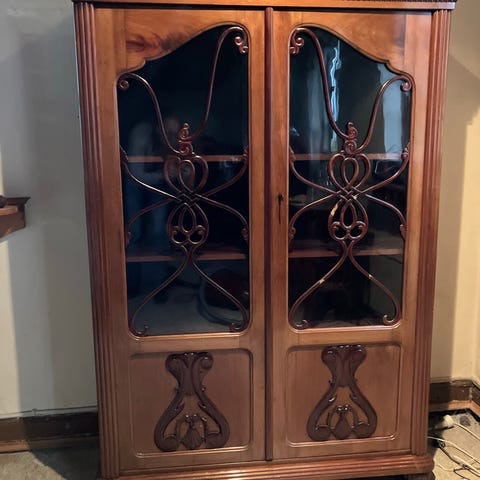 Fint skab med indbygget niche og buede døre fra ca. slutningen af 18-tallet. I sin tid lavet som et svendestykke.