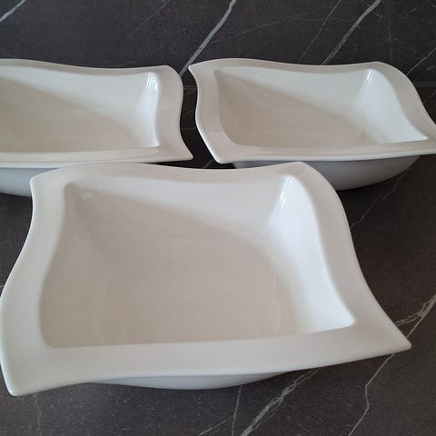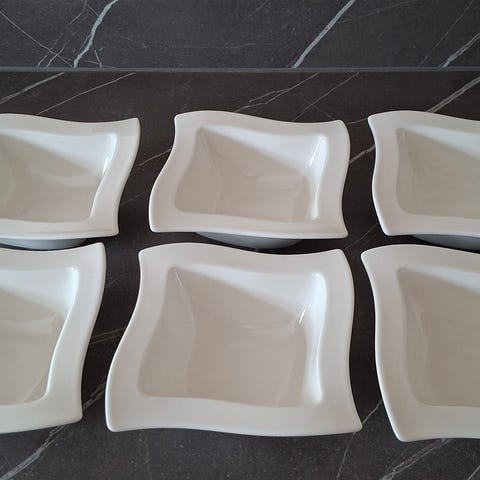Villeroy & Boch, New Wave 5 dipskåle, Hvide firkantede og aflange i porcelæn