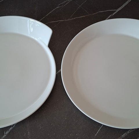 2 Rektangulære fade i hvidt porcelæn 32 x 32 cm. Fadene har bløde, buede kanter og en moderne form, der egner sig til servering af fx salater, tilbehør eller ovnretter. Velegnede til brug i køkken og på bord til hverdag og gæster. Sælges samlet. Sendes ikke, skal afhentes.