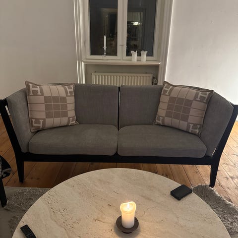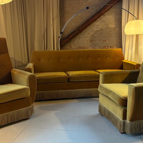 Smuk støvet grøn velour i god kvalitet. Faste hynder som man sidder godt i.