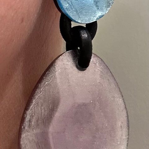 Se annonce med matchende øreclips i rosa / lyseblå.