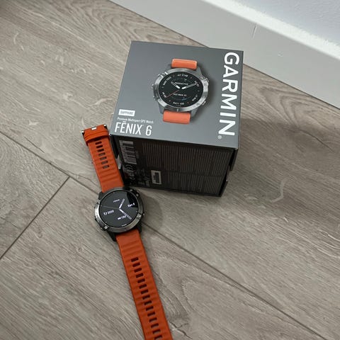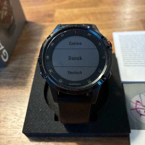 Garmin Fenix sportsur i sort. Uret har rundt display og gummirem med justerbar lukning. Egnet til brug ved sport og hverdagsaktiviteter med visning af tid, dato og aktivitetsdata på skærmen.