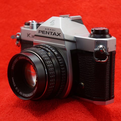 Pentax analogt spejlreflekskamera. Klassisk handy 35 mm filmkamera med udskiftelig optik. Leveres med Originalt Pentax 50mm f:2 objektiv. Bruges med kompatible Pentax-objektiver med K-fatning. Kameraet er blændeprioriteret. Du stiller blænden og kameraet finder automatisk ud af lukkerhastigheden.
