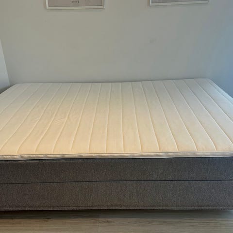 Sengen er brugt siden den blev købt i 2023 og har derfor brugsspor bl.a. pletter på topmadras. Ingen pletter synlige steder.