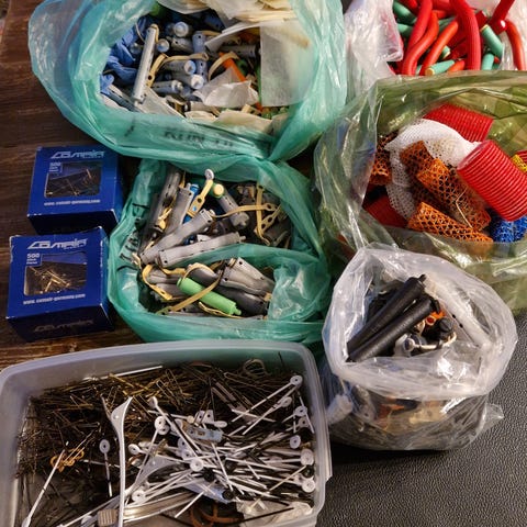 Frisørudstyr blandet parti hårspoler hårklips farvepensler hætte og tilbehør