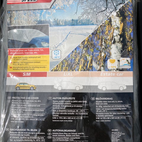 Car cover bilovertræk i størrelse S. Fremstillet i 100 % polyester taffeta, som er kompakt og let. Materialet er glat og ikke-slibende. Overtrækket har elastik syet ind i kanterne ved for- og bagende, så det holdes på plads på bilen. Modellen har refleksstriber i siderne. Velegnet til at dække bilen mod vejr og snavs. Størrelse S passer til biler med ca. mål 400 x 160 x 120 cm.