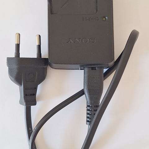 Original Sony batterilader model BC-CSG og originalt batteri nummer NP-BG1