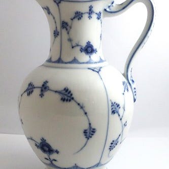 Royal Copenhagen, Musselmalet, riflet, chokoladekande (31), med skår