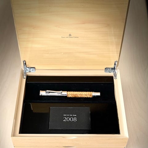 Fyldepen i metal med graveret mønster og sølvfarvet overflade. Penen består af flere dele, herunder skaft, hætte og nib/pennefjeder. Velegnet som skrive- eller samlerobjekt. Ingen synlig mærkning af brand eller model på billederne.