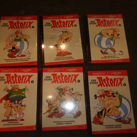 Her er muligheden for at få Den Store Asterix 1-5 samlebind i ulæst stand (stadig i original plastik).