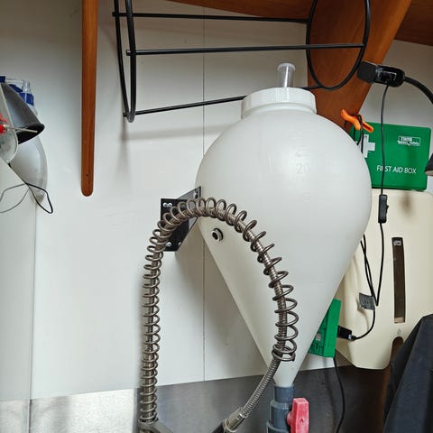 Speidel plast “Fermentegg” gæringstank på ca. 600 liter med original plastfod/sokkel og rustfri Tri-Clamp fittings/ventiler, fødevaregodkendt og lavet til professionel brug. Nemme at rengøre.