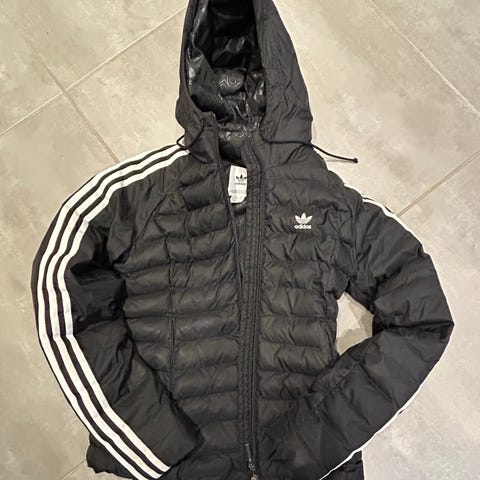 Dunjakke fra Adidas i str small. Høj krave. Flot stand og varm kvalitet. Climawarm 80% gådedun 20% fjer.