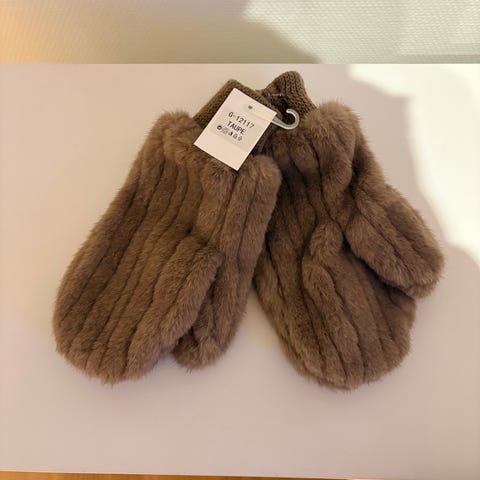 Brune vanter / luffer i fake fur, med sort ribkant, sort for. Str: one size.