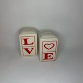 Keramik kok salt- og pebersæt i hvid. Sættet består af to figurer formet som kokke, markeret med henholdsvis S og P. De har malede detaljer som forklæde, tørklæde og hat. Velegnet til brug på spisebord eller i køkken som krydderisæt og dekoration.