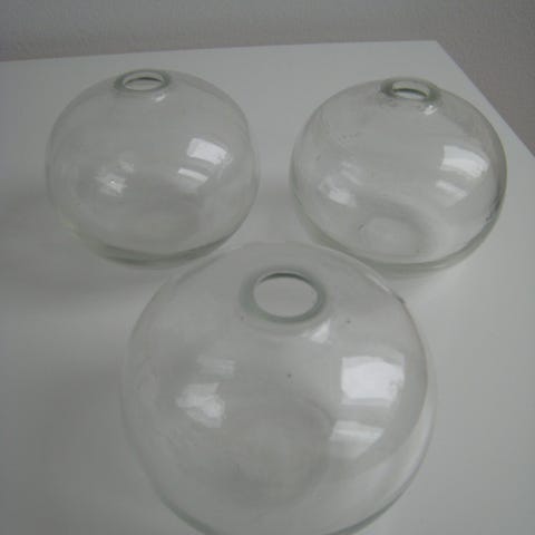 Gråt mønstret glas, pynt/ lille løgplante . Måler højde 10 cm, top diameter 9 cm , bund 5 cm.