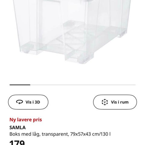 3 x IKEA SAMLA Boks med låg, opbevaring MÅL: Boks med låg, transparent, 79x57x43 cm/130 l