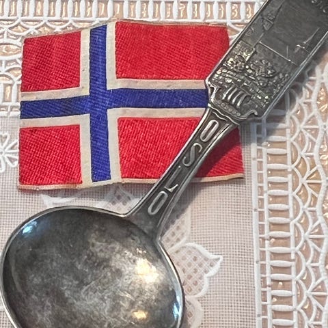 Stilen (blomsten på skaftet) er meget typisk jugend/nationalromantisk norsk design fra perioden.