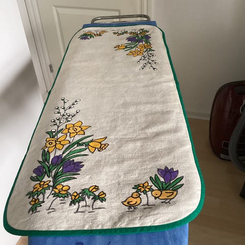 Skøn skøn 97 cm Retro påskeløber i hessian I frisk grøn med gule kyllinger.