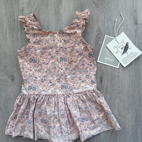 Badedragt i flot farve med sødt print. Med UV og længe ærmer for beskyttelse mod solen.