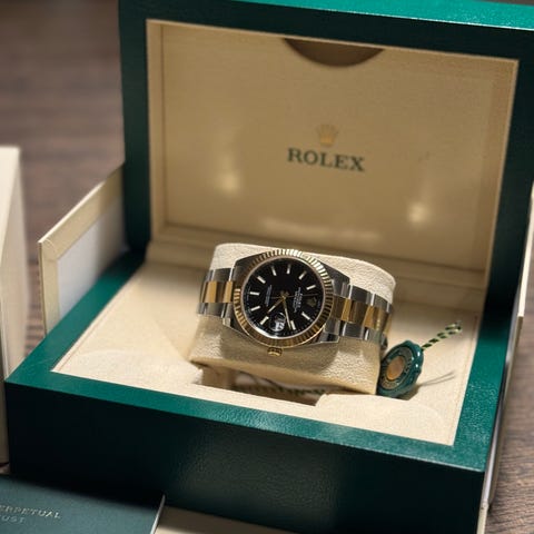 Lækkert Datejust 126300 41 mm. Fra 2019. Yderboks, boks, manual, kort, tags. Overordnet set flot stand, med de uundgåelige hairlines, primært på lås. Befinder sig på Nørrebro hvor det også kan besigtiges. Ønsket autoriseret verificering, er dette på købers regning. Uret kan sendes, men kun ved forudbetaling og på købers eget ansvar.