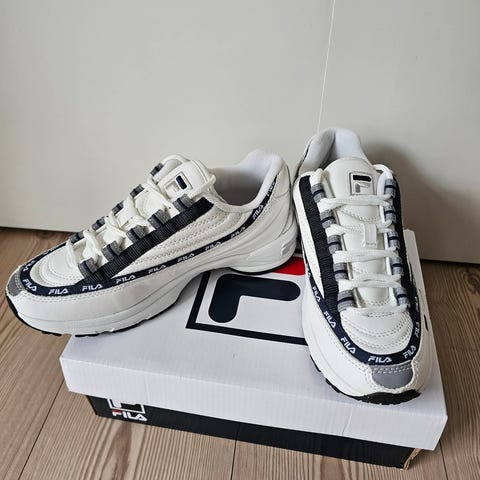 Fila sneakers i str. 42. Modellen er en sporty hverdagssko med kraftig sål. Skoene er i en kombination af hvid og grå med snørelukning. Overdelen er lavet i mesh og syntetisk materiale for åndbarhed og støtte. Velegnet som fritids- og hverdagssko.