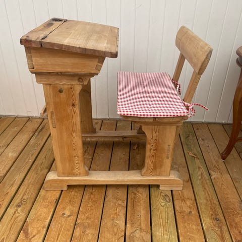 Stoledekeb kan skubbes ind under bordpladen så det fylder mindre