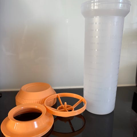 Den har et 2 gearsystem, der gør det nemt, at blande ingredienser uden strøm.