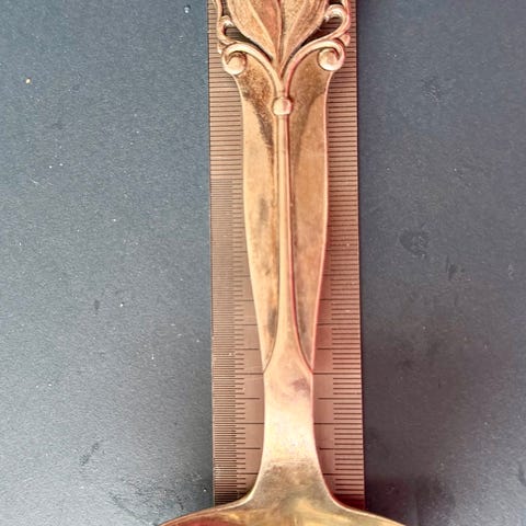 Smuk og dekorativ dansk serveringsske i massivt sølv, udført i jugend/Art Nouveau-stil omkring år 1900.