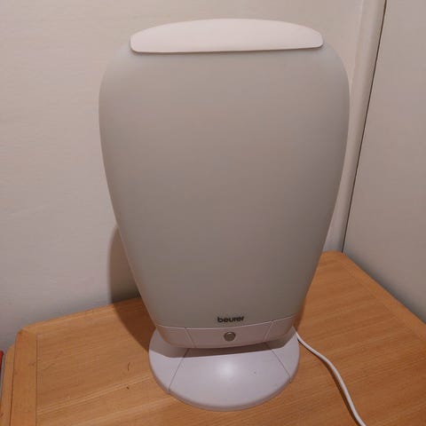 Lampen er hvid og har kun været prøvet enkelte gange, så den er derfor som ny. Etui, holder og strømforsyning medfølger.