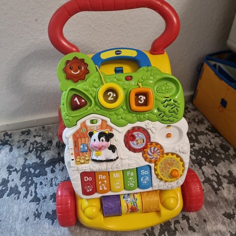 Fisher-Price gåvogn kan spille musik. Den er som ny