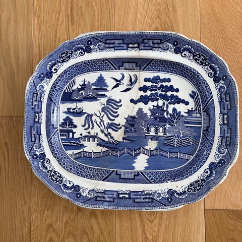 Porcelænsfad hvid med blå dekoration