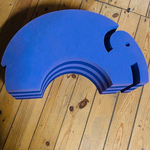 bObles Elefant i den rolige farve Cloudy Blue. Størrelse S (37 cm). Kan bruges som vippebræt, gyngehest, skammel eller barnets første stol. Stimulerer motorik og balance.
