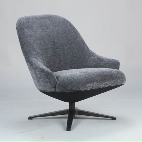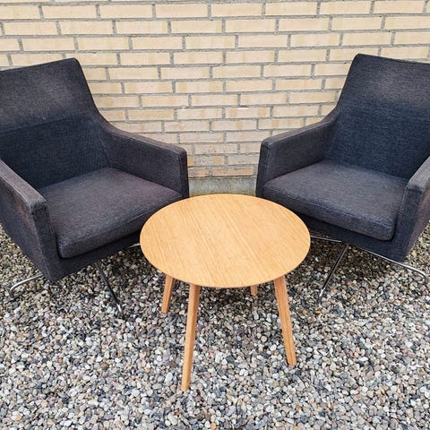 Koo International. Spritnye. Par lænestole polstret med grå Baghera alcantara, ben af massiv bøgetræ. Præcist ligeså lækre og bløde at sidde i, som man forestiller sig :)