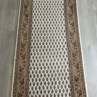 Indien håndknyttet orientalsk løber i uld på bomuld, 3,60 × 0,80 m, flerfarvet, fra slutningen af det 20. århundrede, i meget god stand. Klik på den blå "gå til varen" knap, for at købe eller byde på denne vare. Den samlede pris vil blive vist inden du afgiver dit bud.