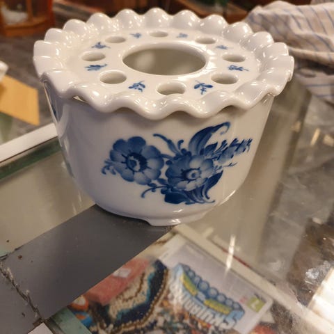 Porcelæn, fyrfad/tevarmer, Blå Blomst KgL.