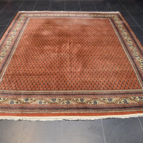 Fremstillet af uld, med en smidig og holdbar struktur. I god antik tilstand med normalt aldersmæssigt slid. Et elegant og dekorativt tæppe med tidløs udstråling.