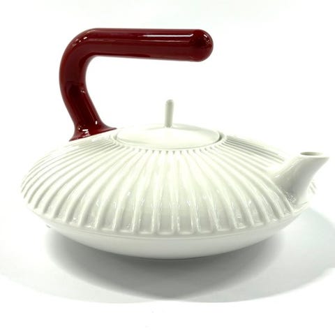 Lyserød rød og let at holde, den er designet til at holde dine hænder sikre, mens du hælder varm te i din kop. 'Handle With Care' tekande af Richard Hutten for DROOG, fremstillet i Holland 2014.