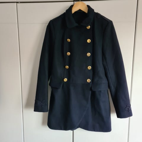 Lækker jakke i uld, str. 34 fra Day Birger. Farve: Marine. Brugt minimalt. Derfor i rigtig god stand.