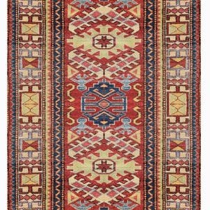 Der tilbydes et håndknyttet Kazak orientteppe.