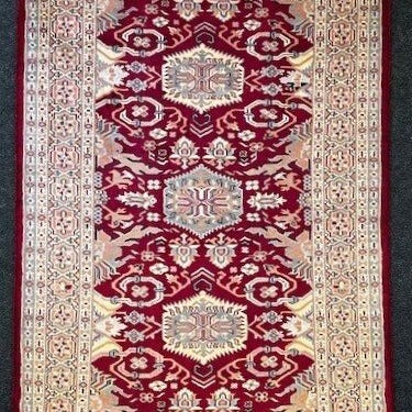 Håndknyttet orientalsk tæppe i uld uden centralt medaillon. Meget blomsteragtigt og afsluttet med en stor blomsterkant.