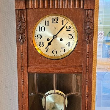 Et fint antikt vægregulatorur i tysk stil fra slutningen af 1800-tallet.