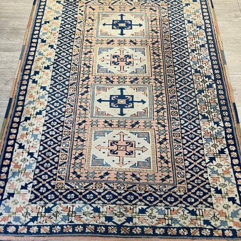 Turkisk Milas høj kvalitet håndlavet uldteppe kirsebærrød gult 6,5 x 3,5 ft -...