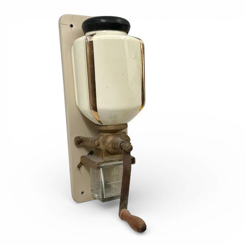 Denne type vægmonteret kaffekværn blev meget brugt i husholdninger og små butikker og er i dag meget populær som samlerobjekt og som dekorativt element i landlige, vintage eller industrielle indretninger.