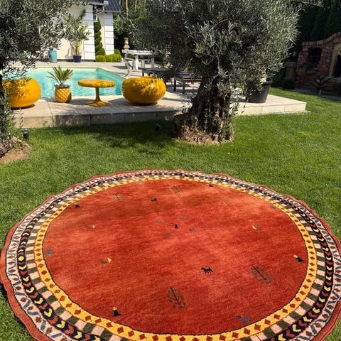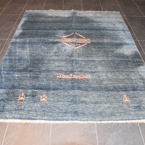 Der tilbydes et håndknyttet orientalsk tæppe fra provinsen Gabbeh (Her: Indo Gabbeh).