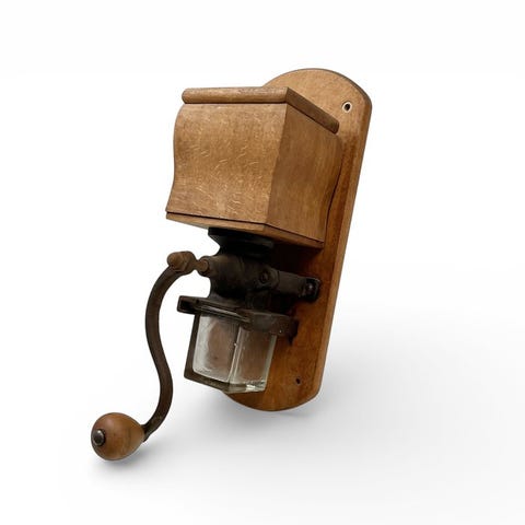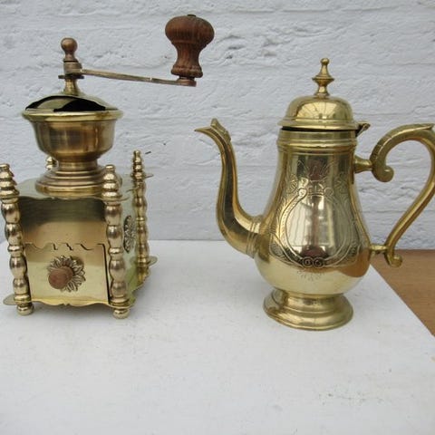 Kaffekværn af kobber med påskriften BUDAPEST, altså fra Ungarn