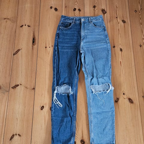 Pæne blå cowboybukser med 2 forlommer og 2 lommer bagpå, har huleffekt på benet og benene er smalle