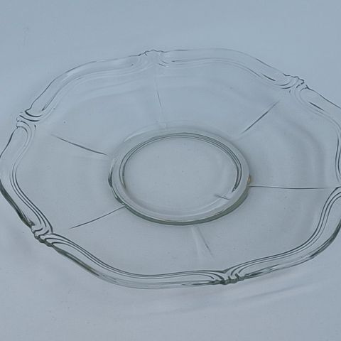 Utrolig flot kagefad i glas, med integreret håndtag i hver side. Flot mønster i bunden, hvor noget af det er krystalslebet - flot udført.